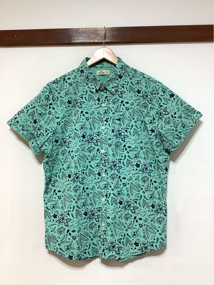 - ぬ1606 HOLLISTER ホリスター 総柄 半袖シャツ XL ブルーグリーン 袖ロールアップ ボタンダウン ボタニカル 花柄