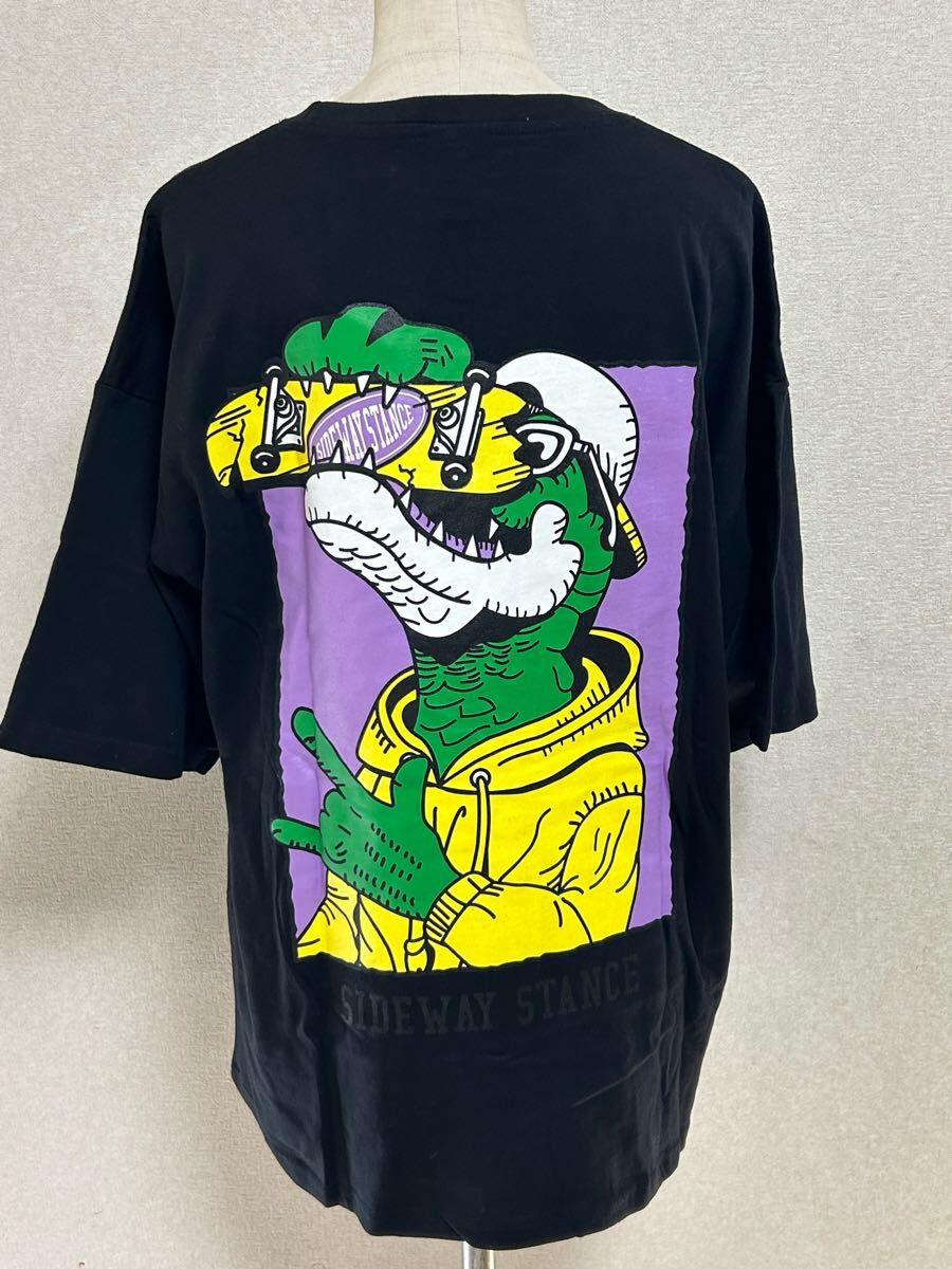 > メンズ・タグ付き【 SLDEWAY STANCE★サイドウェイスタンス】半袖プリントTシャツ・バックプリント・ブラック・Mサイズ(ゆったりめ)