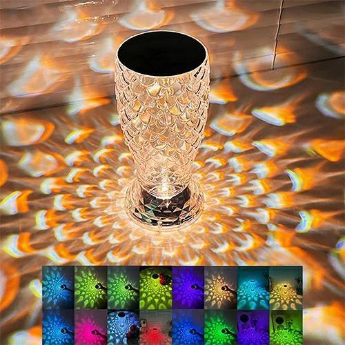 - ローズクリスタルランプ卓上 透明 常夜灯 タッチ調光 USB充電式サイドランプ