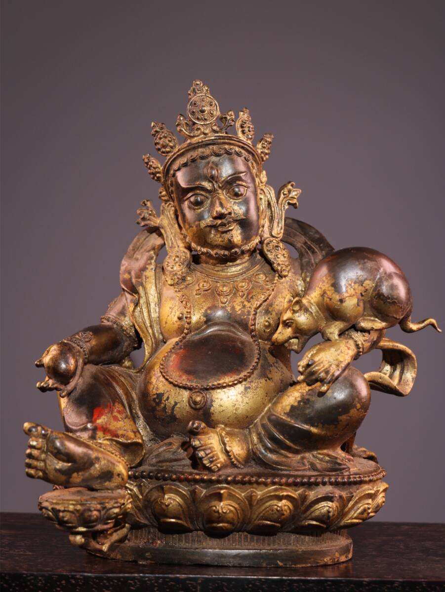 - 『清・銅製・泥金・朱砂・黄財神像・密宗密教・蔵伝仏像・供養品』極細工 置物 古賞物 中国古玩 中国古美術