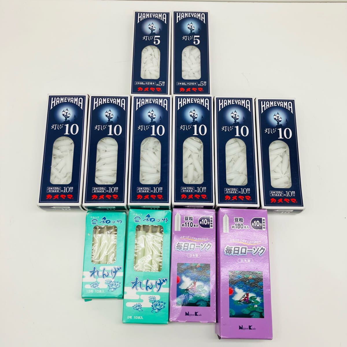 - ★N カメヤマ KAMEYAMA 灯しび10×6箱 灯しび5×2箱 和ローソク れんげ10本×2箱 毎日ローソク180本・110本 12箱まとめ売り G-73