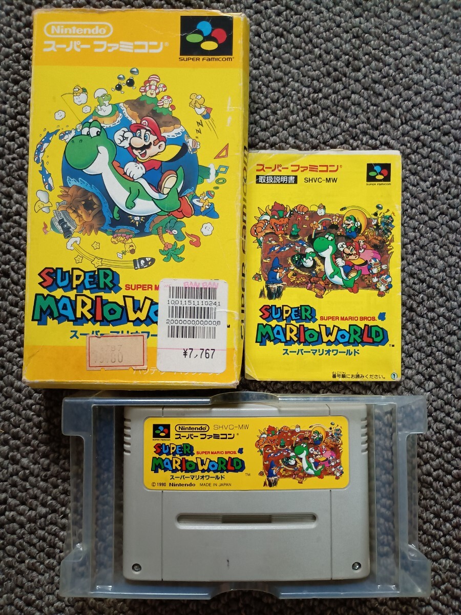 - 送料無料 即買 SFC スーパーマリオワールド 箱説付 メンテ済②