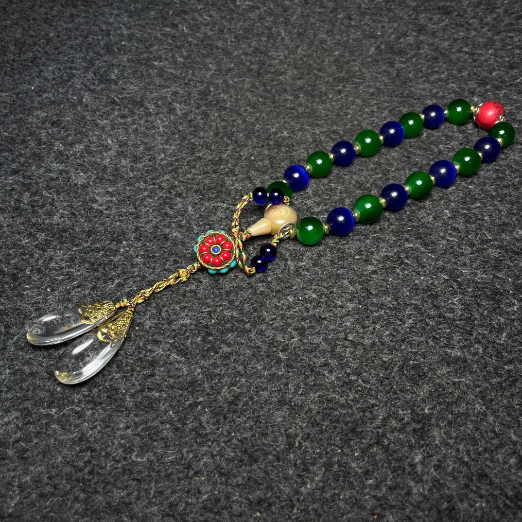 - 『館蔵珍品 ネコ眼石細密彫 十八子手持 箱付 根付 裝身具』稀少珍蔵品 古賞物 貴重物品 収蔵品 中国古美術 時代物 古董品