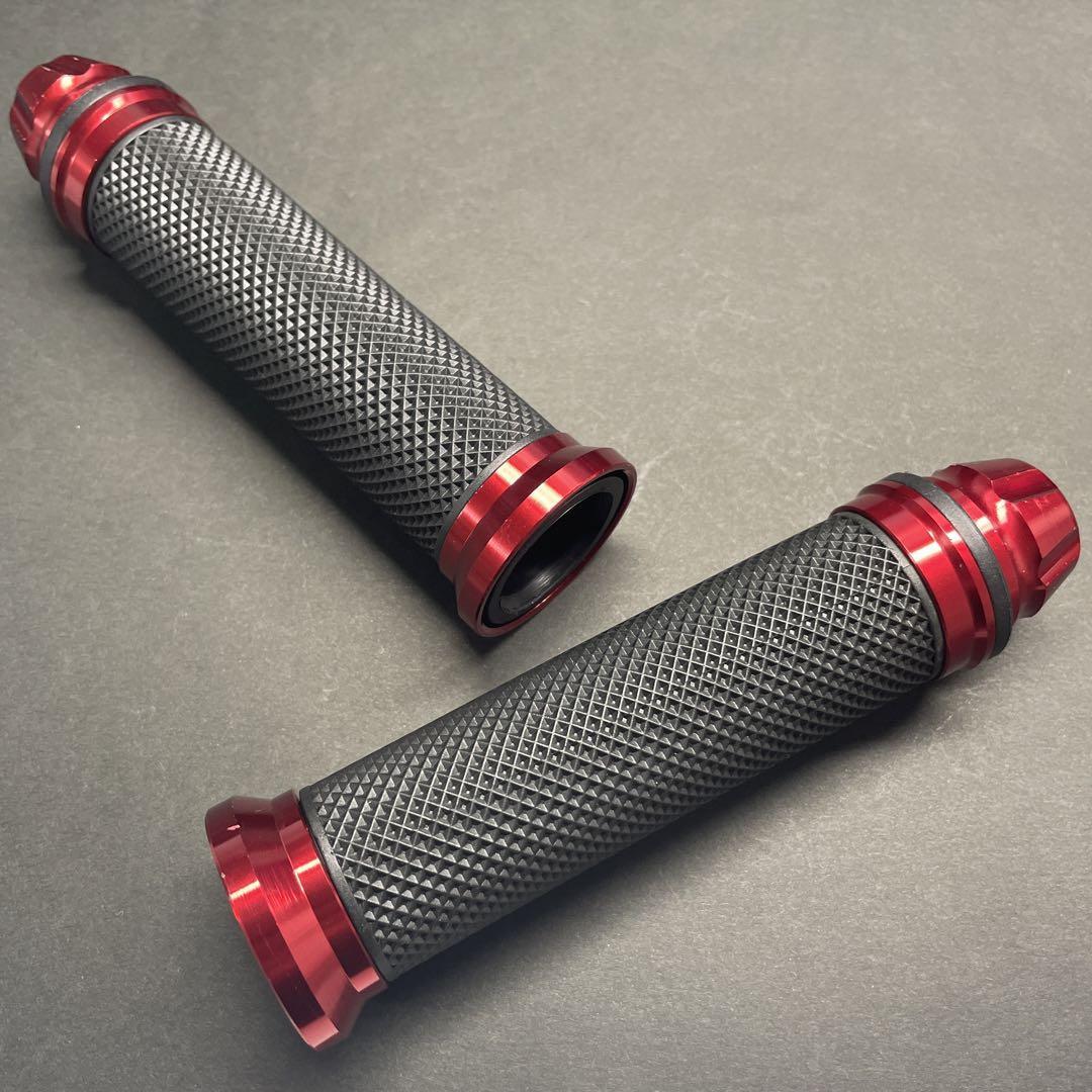 > アルミ製 ハンドル グリップ 22.2mm 赤 レッド バーエンド 一体型 ディオ エイプ モンキー ゴリラ リード ズーマー ジョグ アクシス90