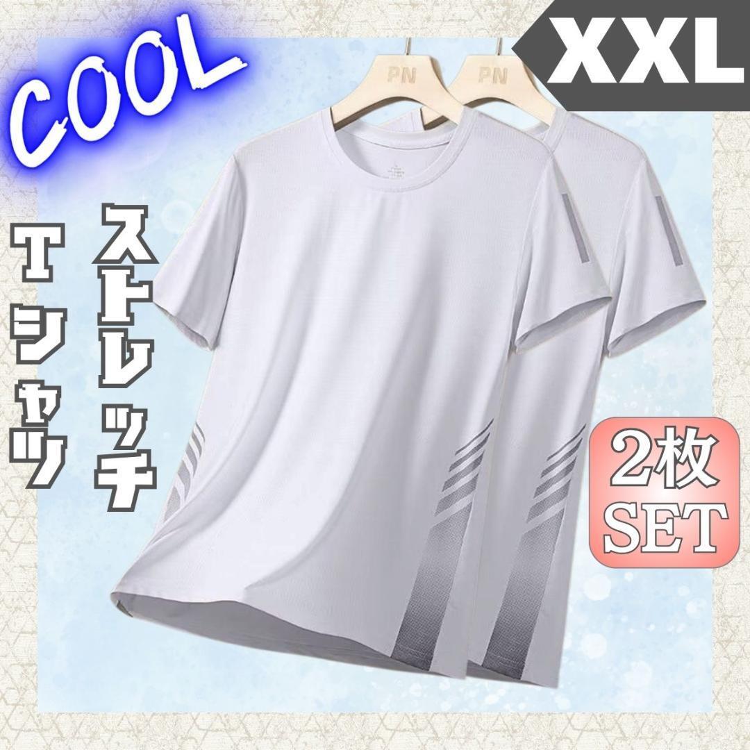 - 吸汗 速乾 ストレッチ Tシャツ XXL 2枚 クルーネック 接触冷感 ホワイト