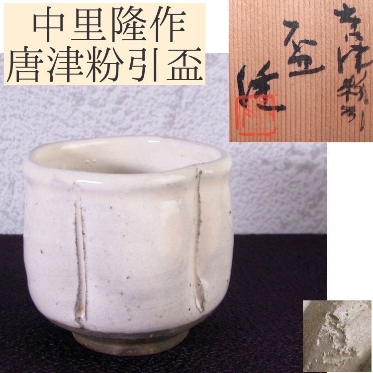 - 中里隆作 唐津粉引盃 幅:5.5cm 美品 共箱・栞付/25b053