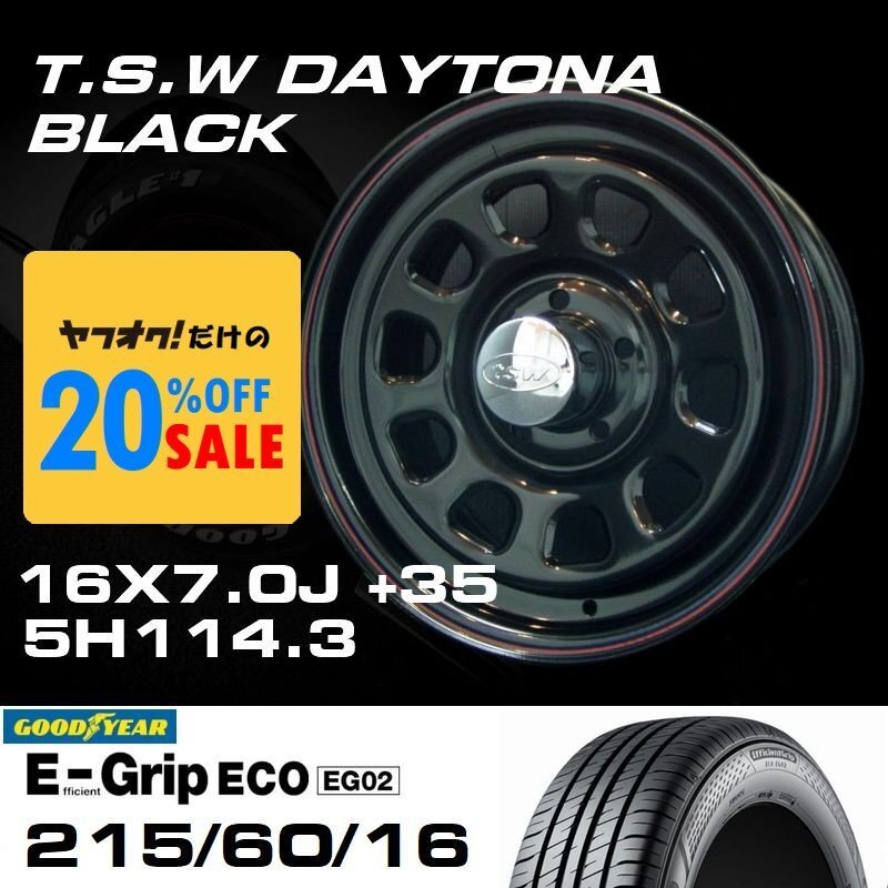 - 特価 TSW DAYTONA ブラック 16X7J+35 5穴114.3 GOODYEAR E-GRIP 215/60R16 4本セット ホイールタイヤ4本セット