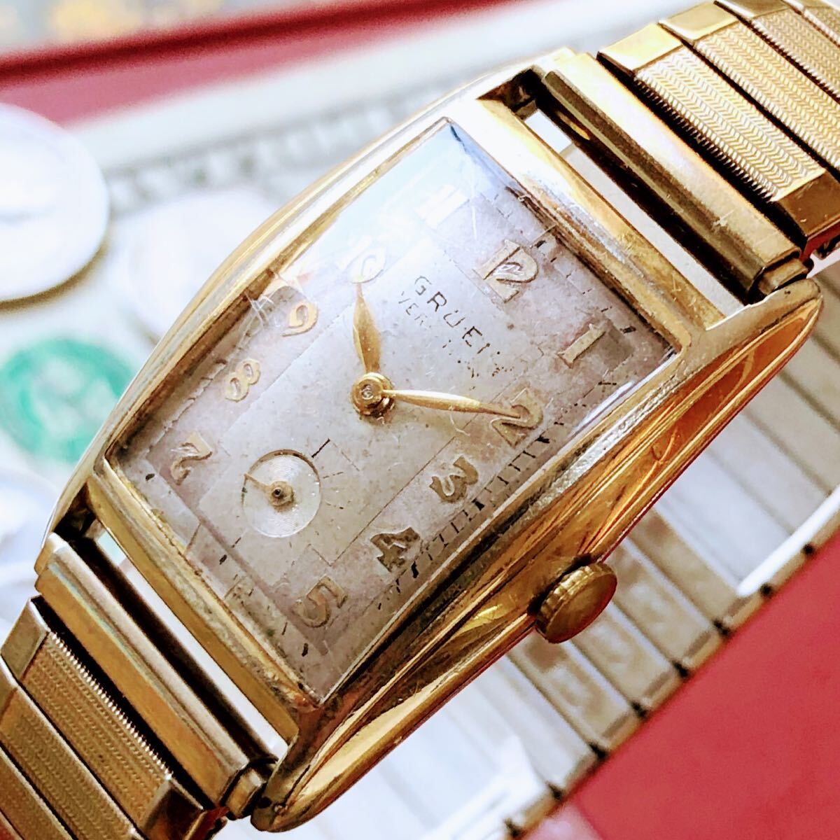 - #3676【シックでお洒落】メンズ 腕時計 グリュエン 動作品 アンティーク 手巻き GRUEN 金張り アンティーク ヴィンテージ 15石 1938年 四角