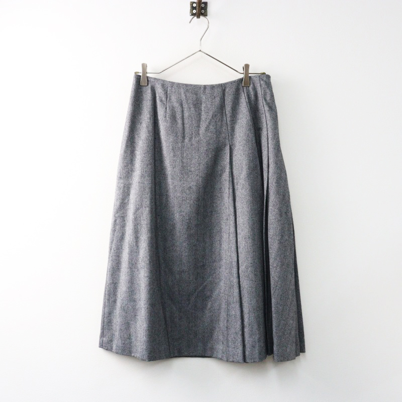 - 美品 ポールスチュアート Paul Stuart ウールヘリンボーンプリーツスカート 8/グレー フレア【2400014511918】