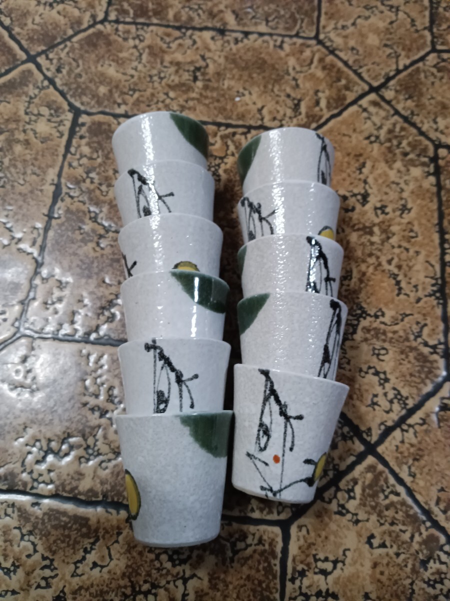 - 【旧家の蔵から】昭和レトロ 手描きカッパ/河童のぐい呑み11客セット 陶器 日本製 日本料理 |070725
