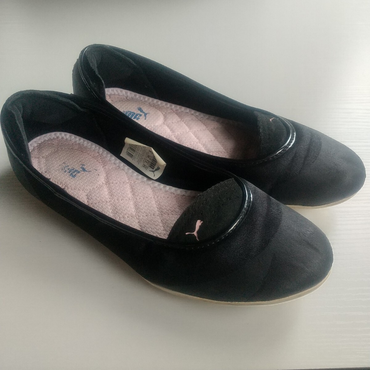 - 【中古品】PUMA プーマ ★ レディース バレエシューズ 24cm * 婦人靴 ブラック 黒 ピンク パンプス サテン