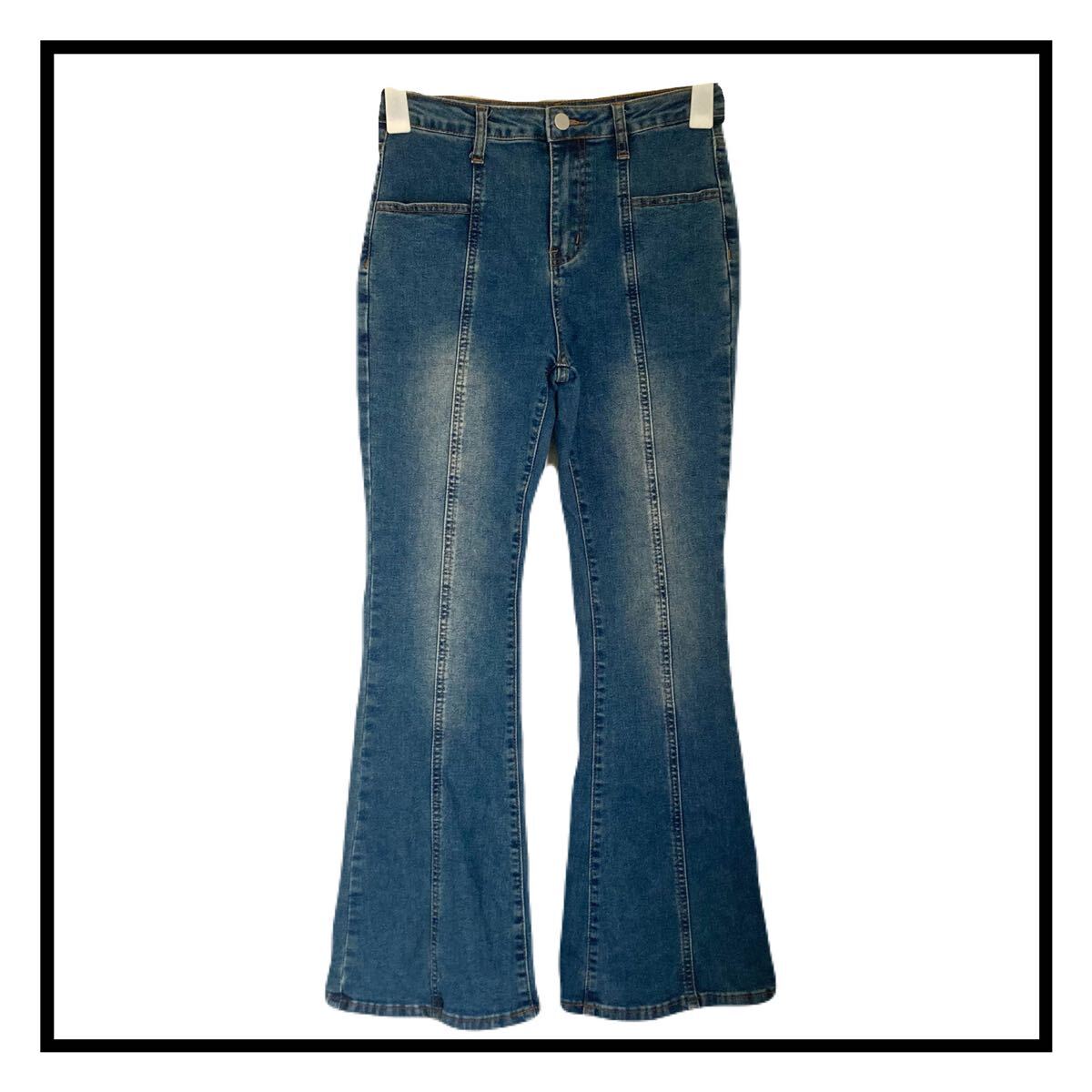 - 平成ギャル Y2K ブーツカット フレア デニムパンツ レディース ネイビー M