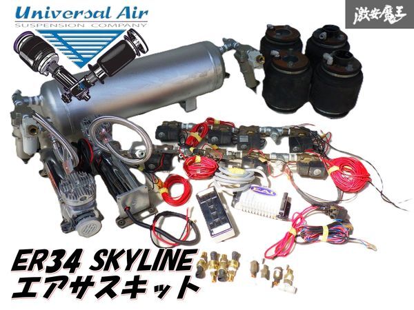 > 【ストア出品】 ユニバーサルエアー NISSAN 日産 ER34 スカイライン に使用 エアサスペンション キット タンク コンプレッサー 即納