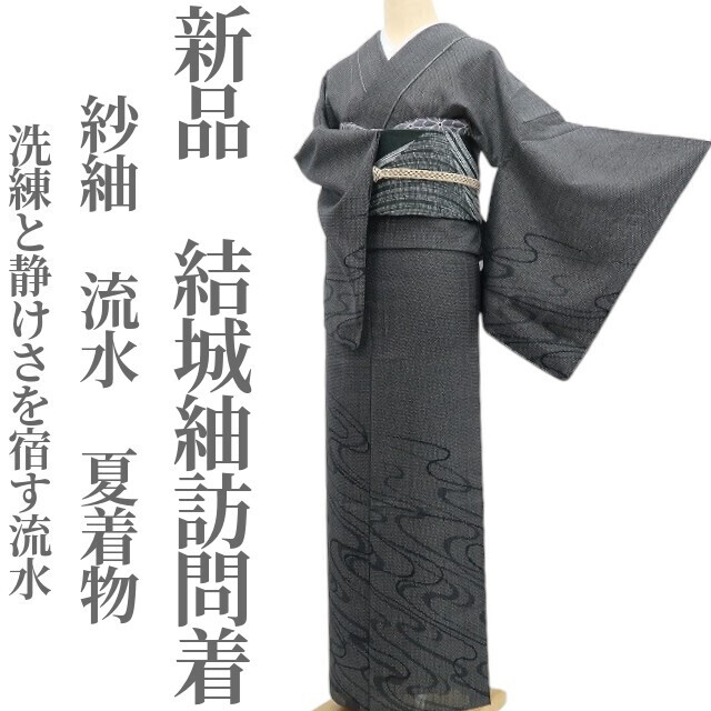 - tomihisa 新品 紗紬 流水 夏着物 正絹 仕付け糸付”洗練と静けさを宿す流水”結城紬訪問着 6278