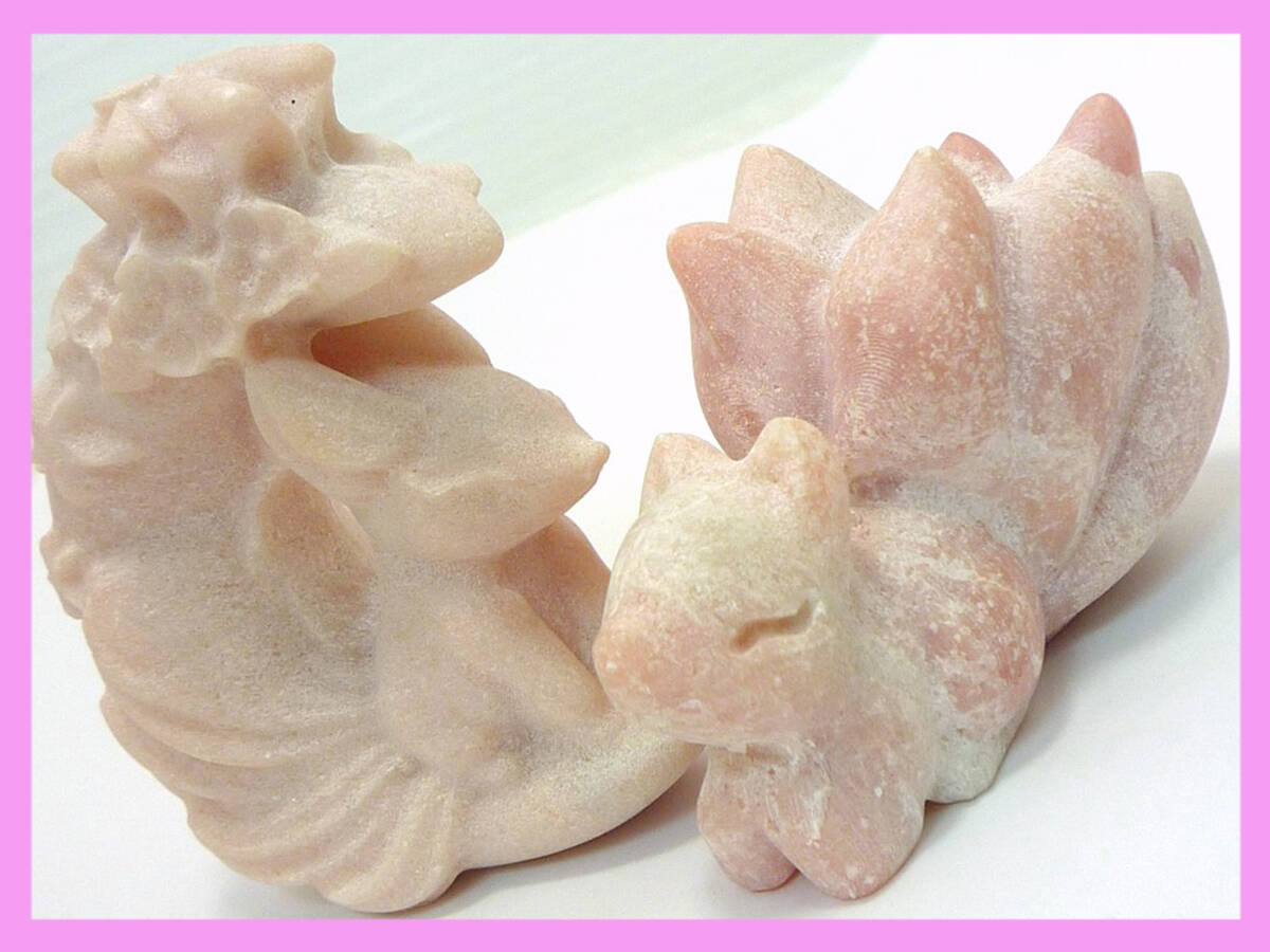 > ピンクオパール キツネ リス 2個セット りす 狐 FOX 九尾狐 レア 可愛い 恋愛運 創造力 インスピレーション 天然石 置物 パワーストーン21