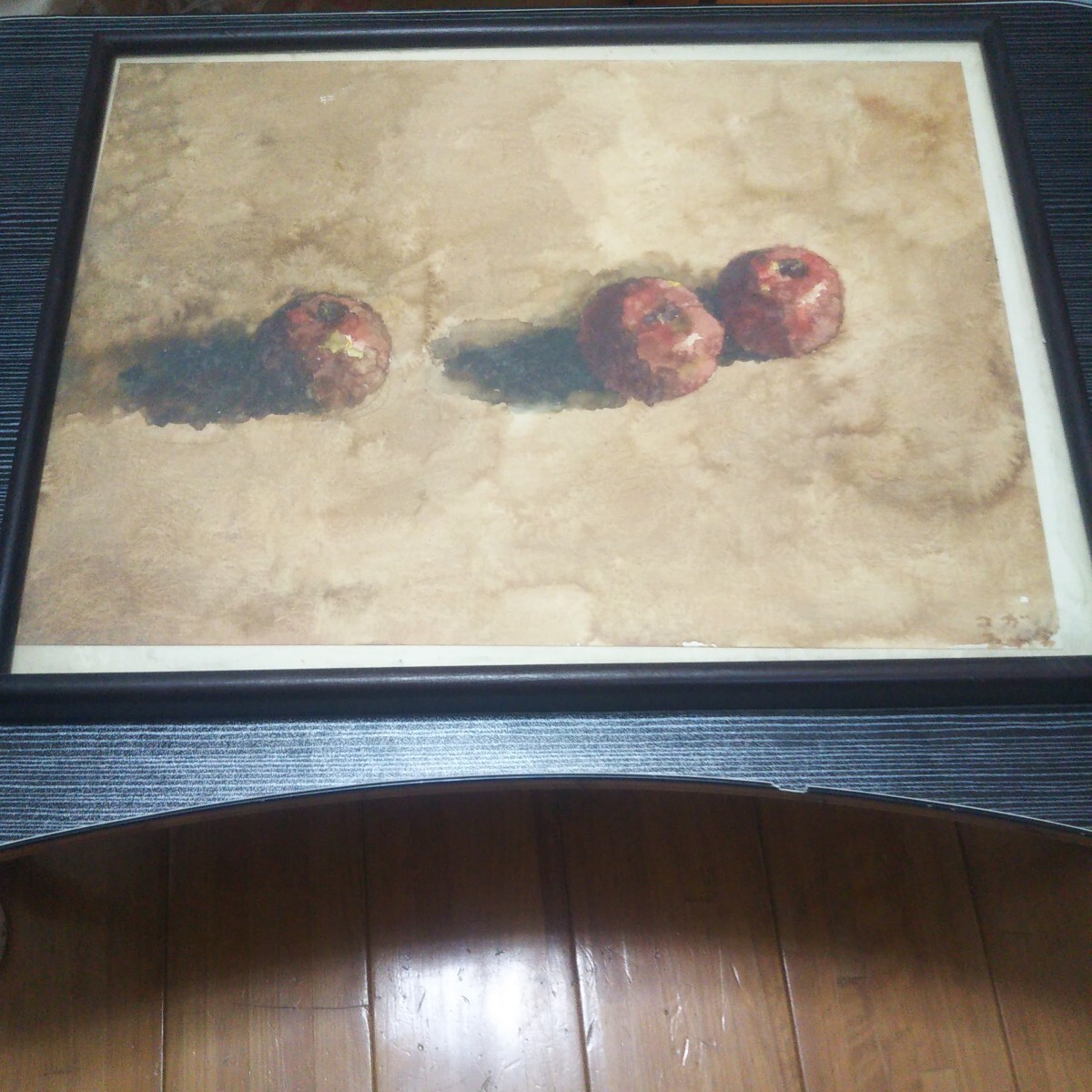- 古い昭和絵画コガ作品三つりんご絵です。額入りです。古い昭和の額なので少し特徴的です。