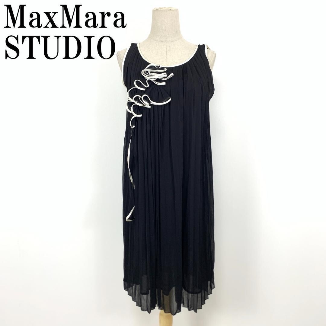 - LA6374 マックスマーラ ストゥーディオ ロングワンピース MaxMara STUDIO プリーツ 立体モチーフ シアー フレア レーヨンブラック S