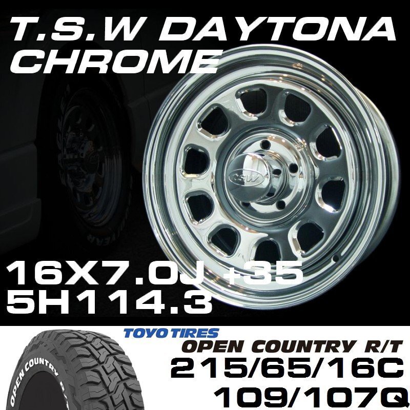 - ○ T's Factory TSW デイトナ クローム 16X7J+35 5穴 114.3 TOYO OPEN COUNTRY R/T 215/65R16C ホワイトレター ホイール & タイヤセット