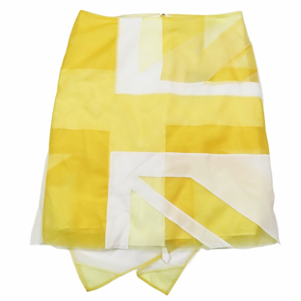- 未使用 BURBERRY バーバリー チュール タイトスカート ミニ丈 ユニオンジャック バックシャン UK8 イエロー ホワイト