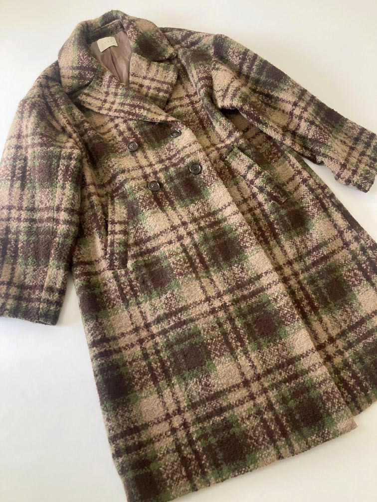 - FIKA. 2139-4251 チェック チェスター ロング コート sizeM/茶 ◆■