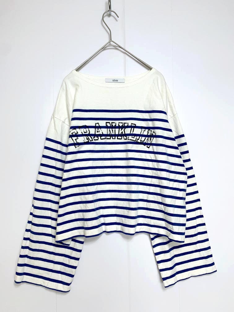 > ゆうパケットOK JOURNAL STANDARD relume ジャーナルスタンダードレリューム 22-070-462-8260-4-0 ロゴ ボーダープルオーバー 白×青 ■■