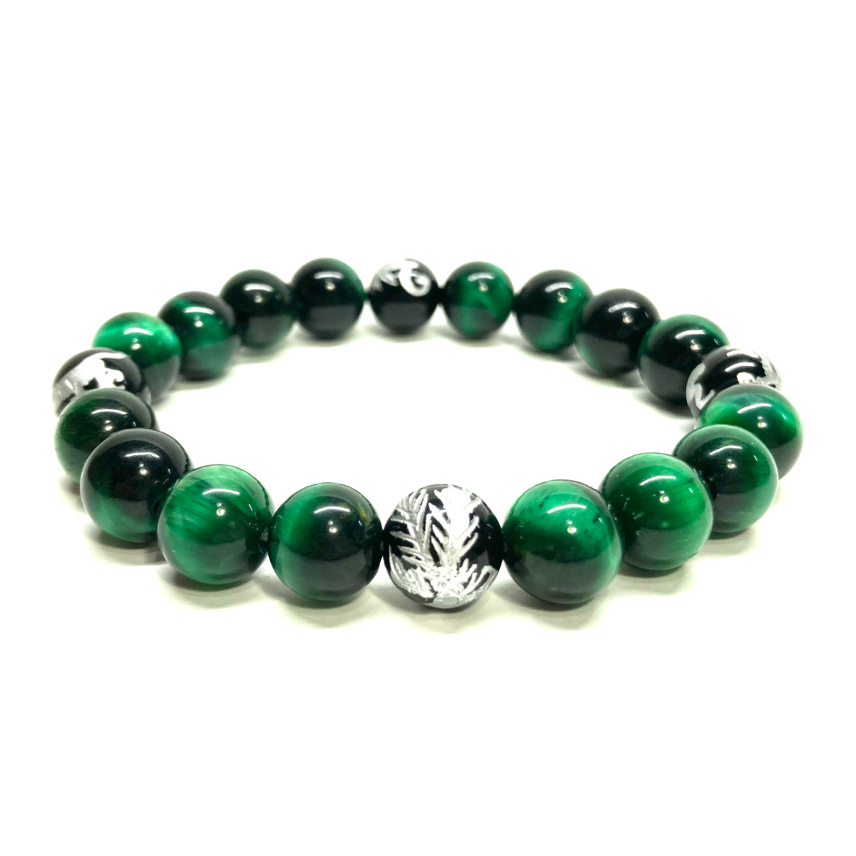 - 10mm 四神獣銀彫オニキス×グリーンタイガーアイ パワーストーン ブレスレット天然石 運気上昇 開運 金運 青龍 白虎 玄武 朱雀 ☆