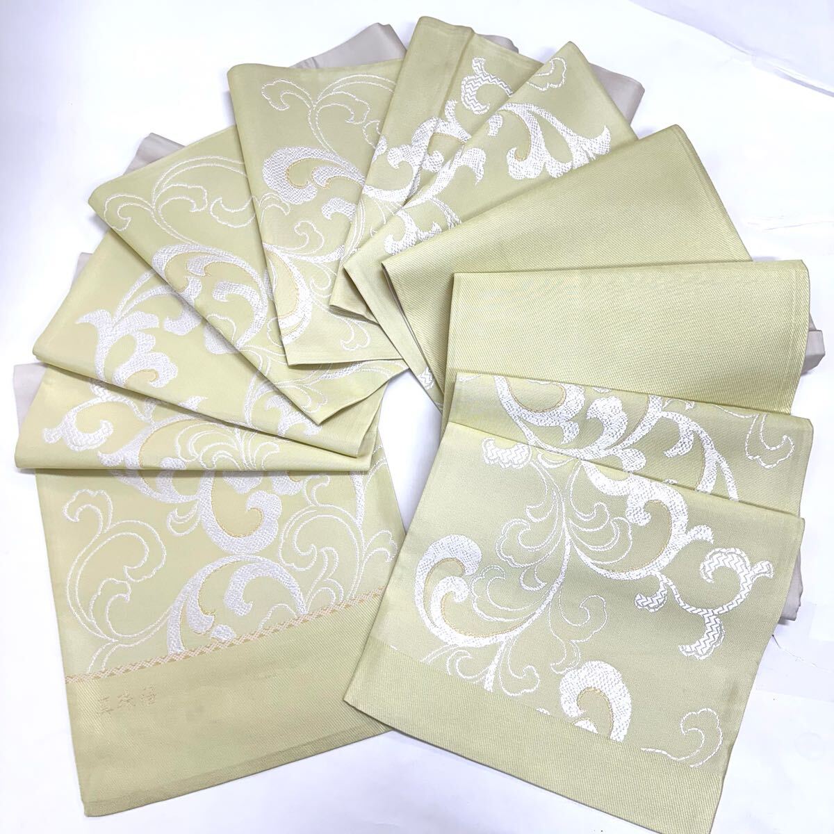 > 【七福】c86 逸品 高級品 正絹 袋帯 六通 真珠箔 唐草 金糸 銀糸 刺繍 豪華 未仕立て