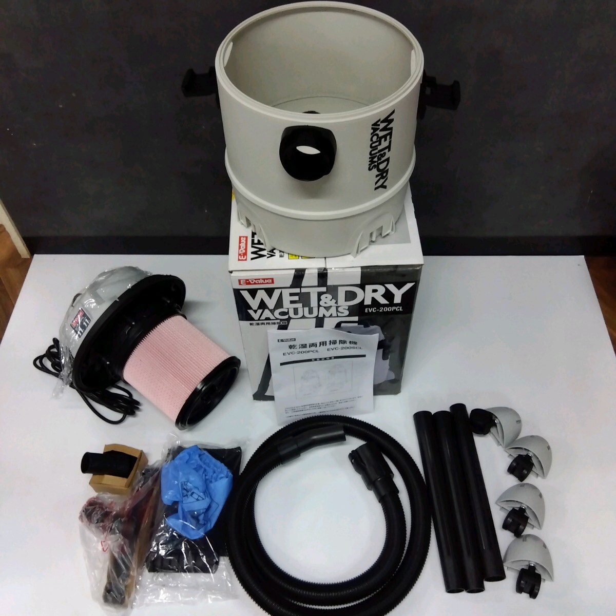 - 1721 E-VALUE イーバリュー WET&DRY VACUUMS 乾湿両用掃除機 EVC-200PCL 粉塵 液体吸引 付属品付き 掃除機 未使用