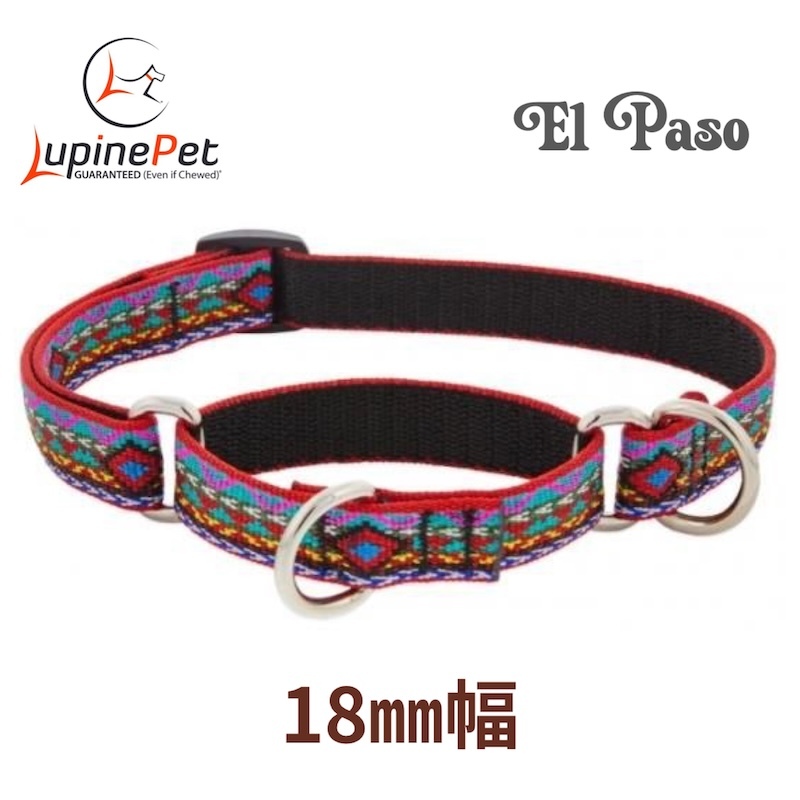 > ハーフチョークカラー・Mサイズ・18mm幅エルパソ El paso柄34-50cm LUPINEルパイン アメリカ製 軽量丈夫 中型犬マーチンゲール