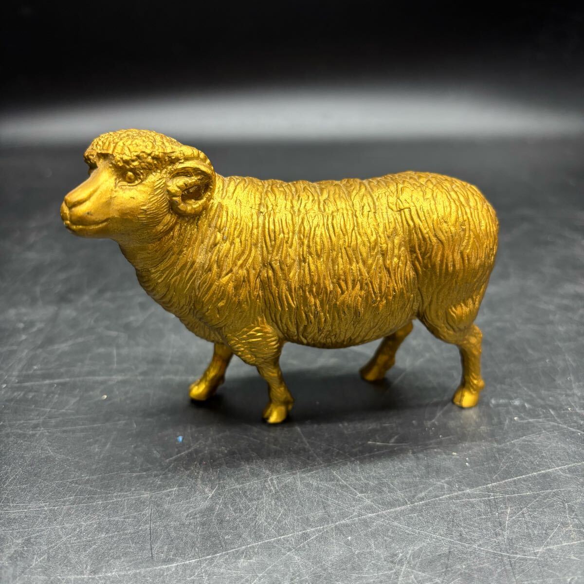 - 1722 金属工芸 金羊 置物 干支 オブジェ ビンテージ ひつじの干支の置物