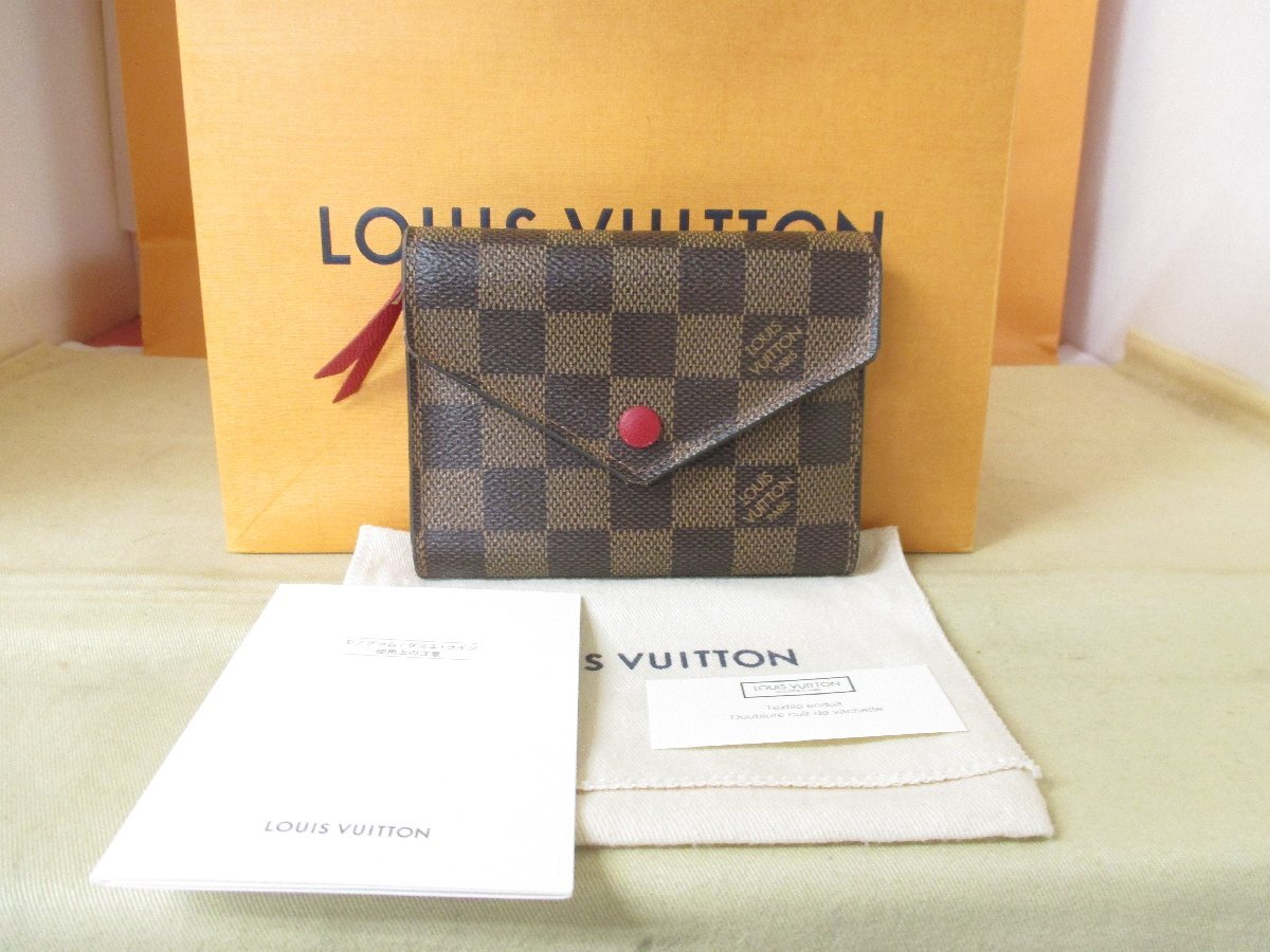 > 本物保証【即決で送料無料】良品/ダミエ/ヴィクトリーヌ/3つ折り/財布/N41659/ヴィトンの保存袋と冊子付属/正規品