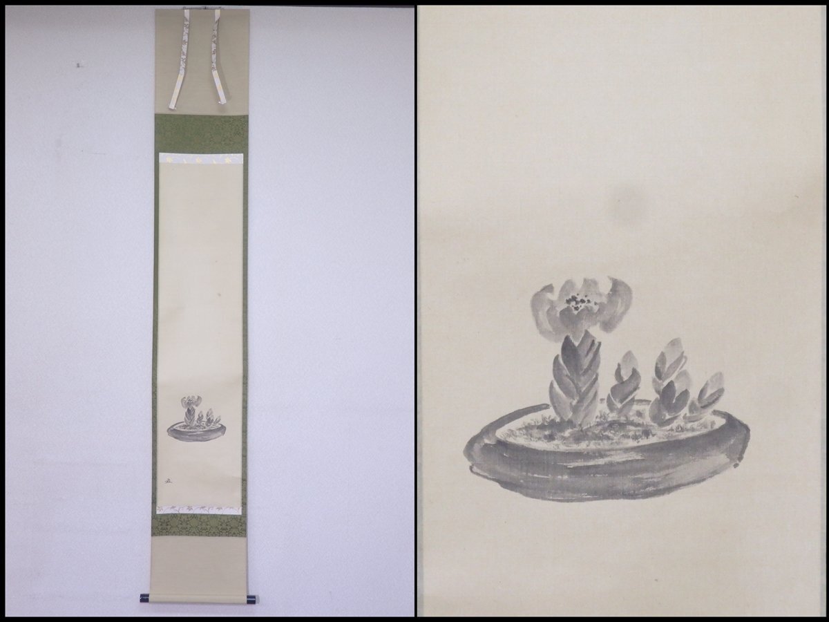 - ★大徳寺塔頭 雲林院主 紫野 藤田寛道和尚 肉筆【掛軸『福寿草』共箱】紙本 幅28.4×全長175.5cm 水墨画 茶道具 茶掛け 初春 茶器