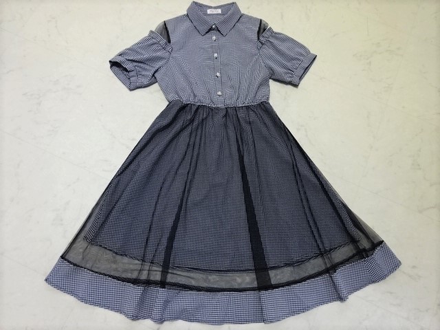- ● 未使用 ByeBye 可愛い お嬢様 シースルーメッシュ ギンガムチェック 半袖 ブラウス フレアー シャツ ワンピース レディース Mサイズ 38