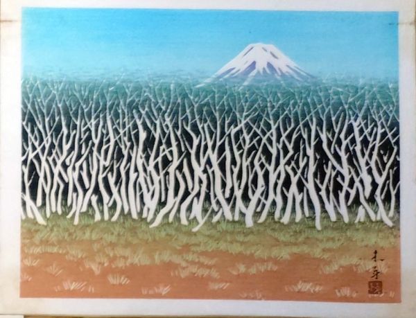 - f25042221〇彩色木版画 ハガキサイズ 富士山 グリーティングカード 錦絵 浮世絵 昭和年代〇和本古書古文書