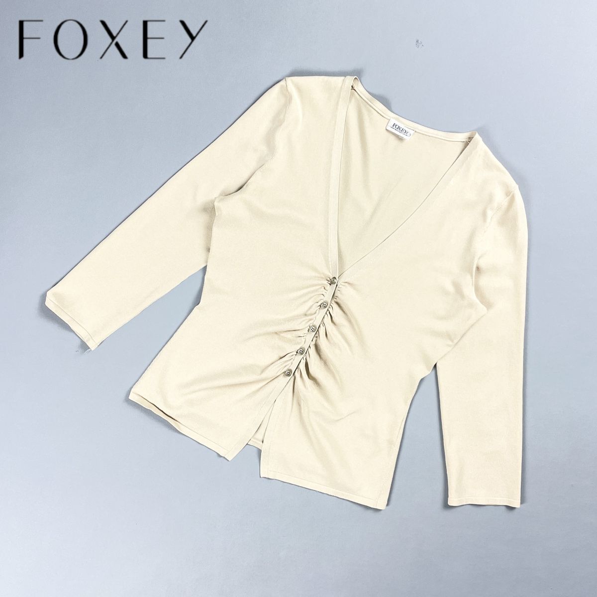 - 美品 FOXEY BOUTIQUE フォクシーブティック フロントギャザーVネックカーディガン トップス レディース ベージュ サイズF*ED756