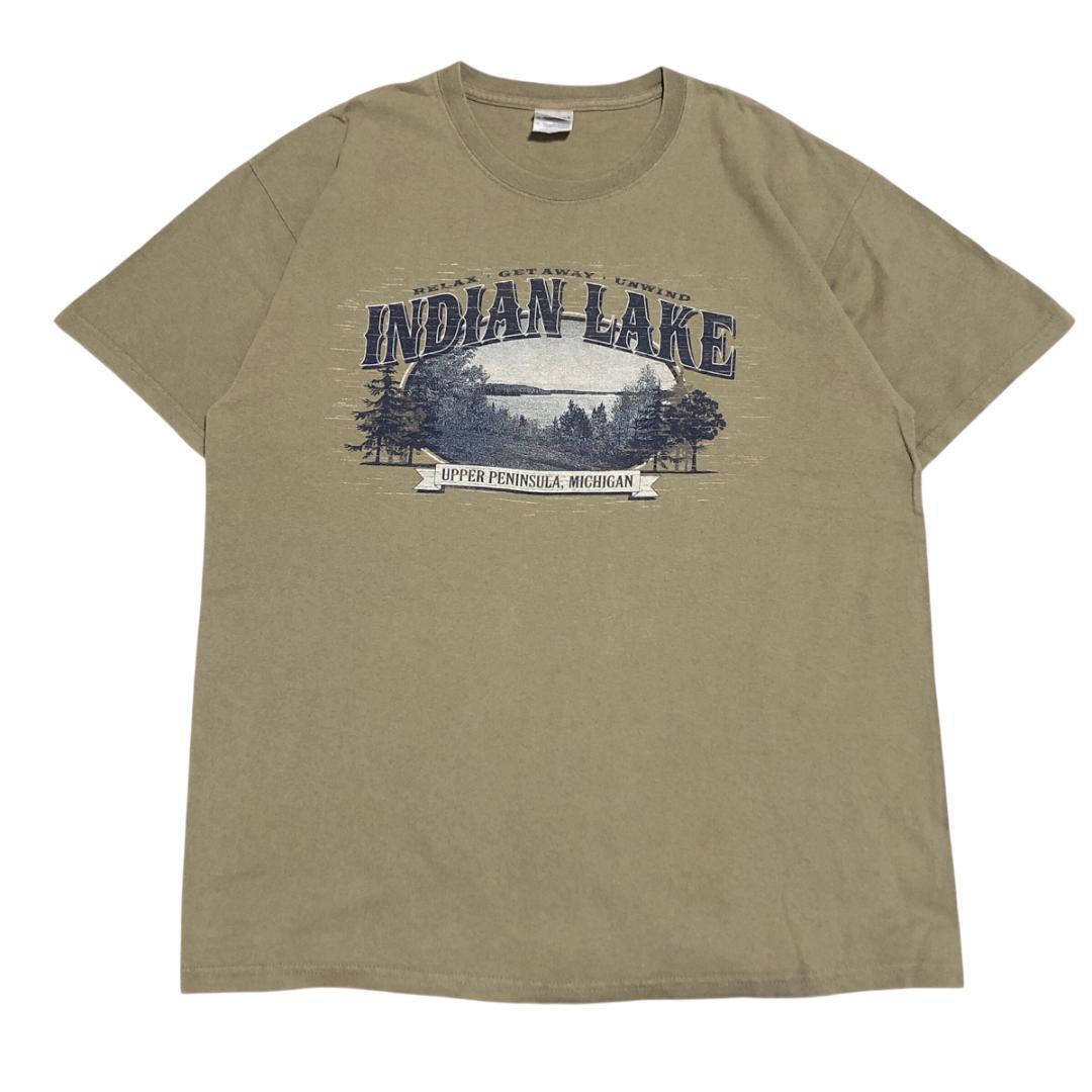 - ミシガン州 インディアンレイク 半袖Tシャツ シティロゴ 夏物古着l63① L相当