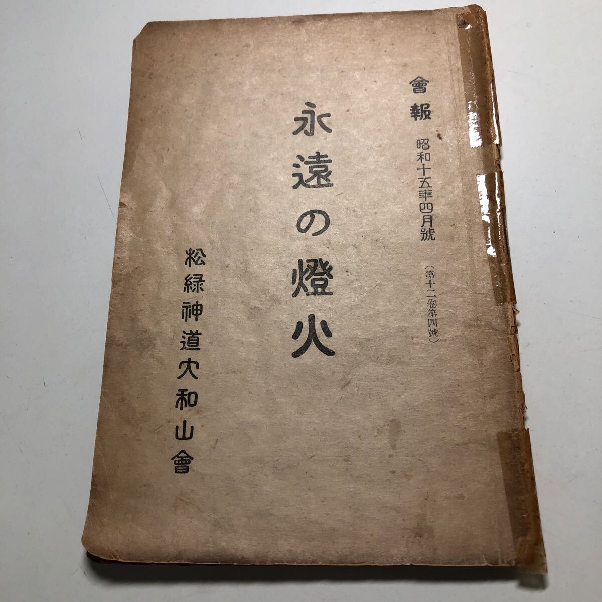 > M2b-283 永遠の燈火 大和山出版部 宗教法人 松緑神道大和山 昭和十五年四月號(1940年4月発行)第十二卷第四號(第12巻第4号)破れあり