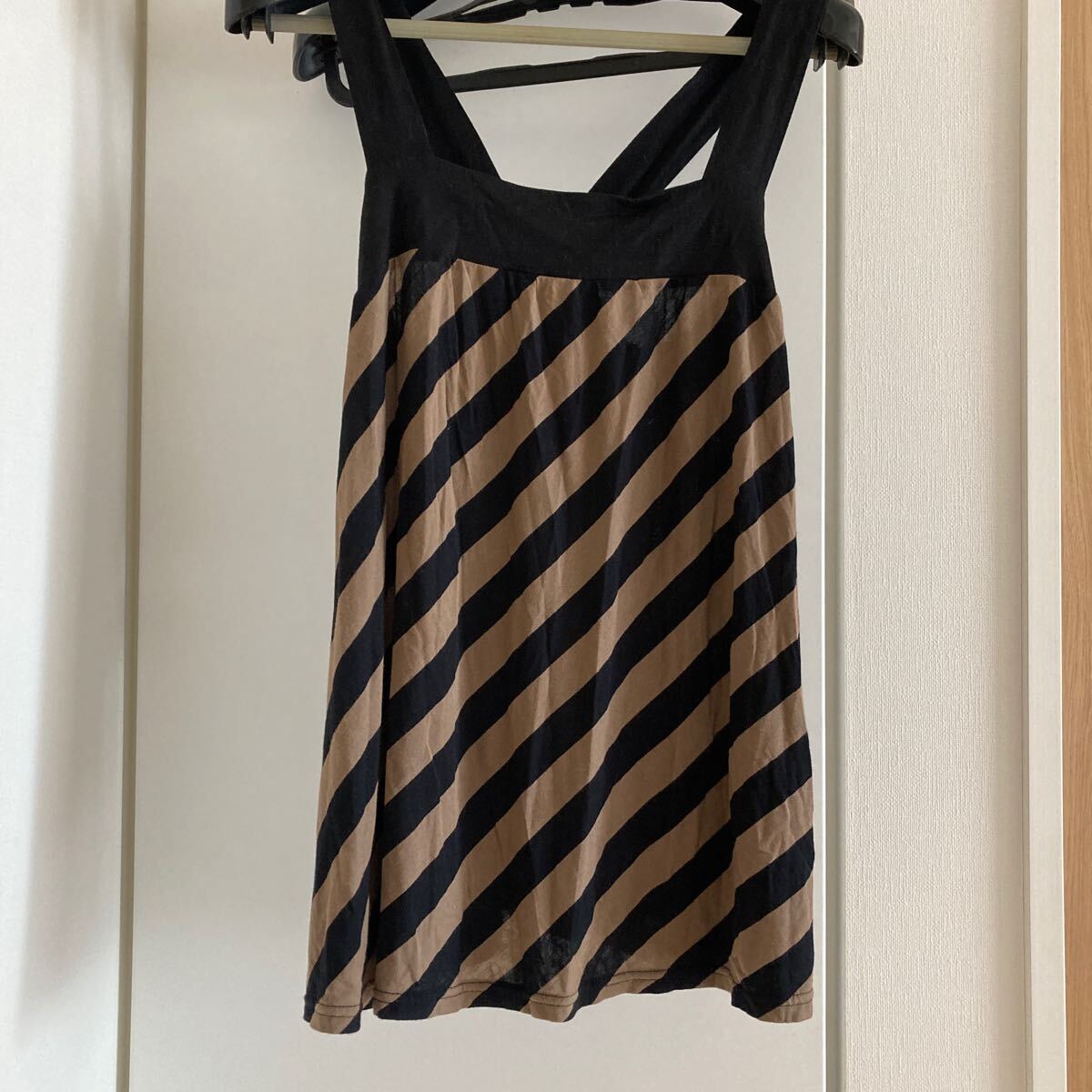 - アナトリエ ノースリーブ キャミソール チュニック ベージュ黒 サイズ38 M リボン Aライン