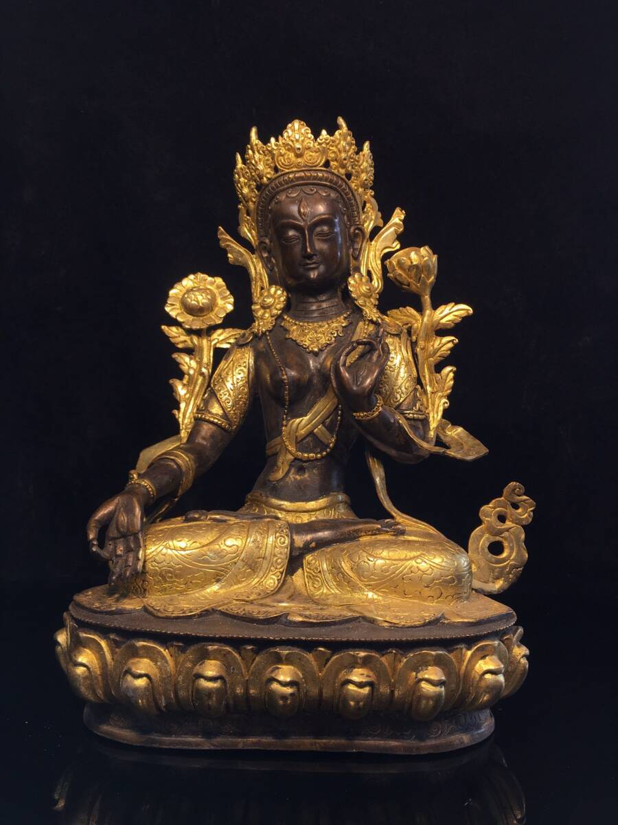 - 【超珍館蔵】銅製 塗金 白度母像 仏像 宗教 仏教古美術 供養品 古賞物 古董品 古美術品 時代物 旧家蔵出 稀少珍蔵品