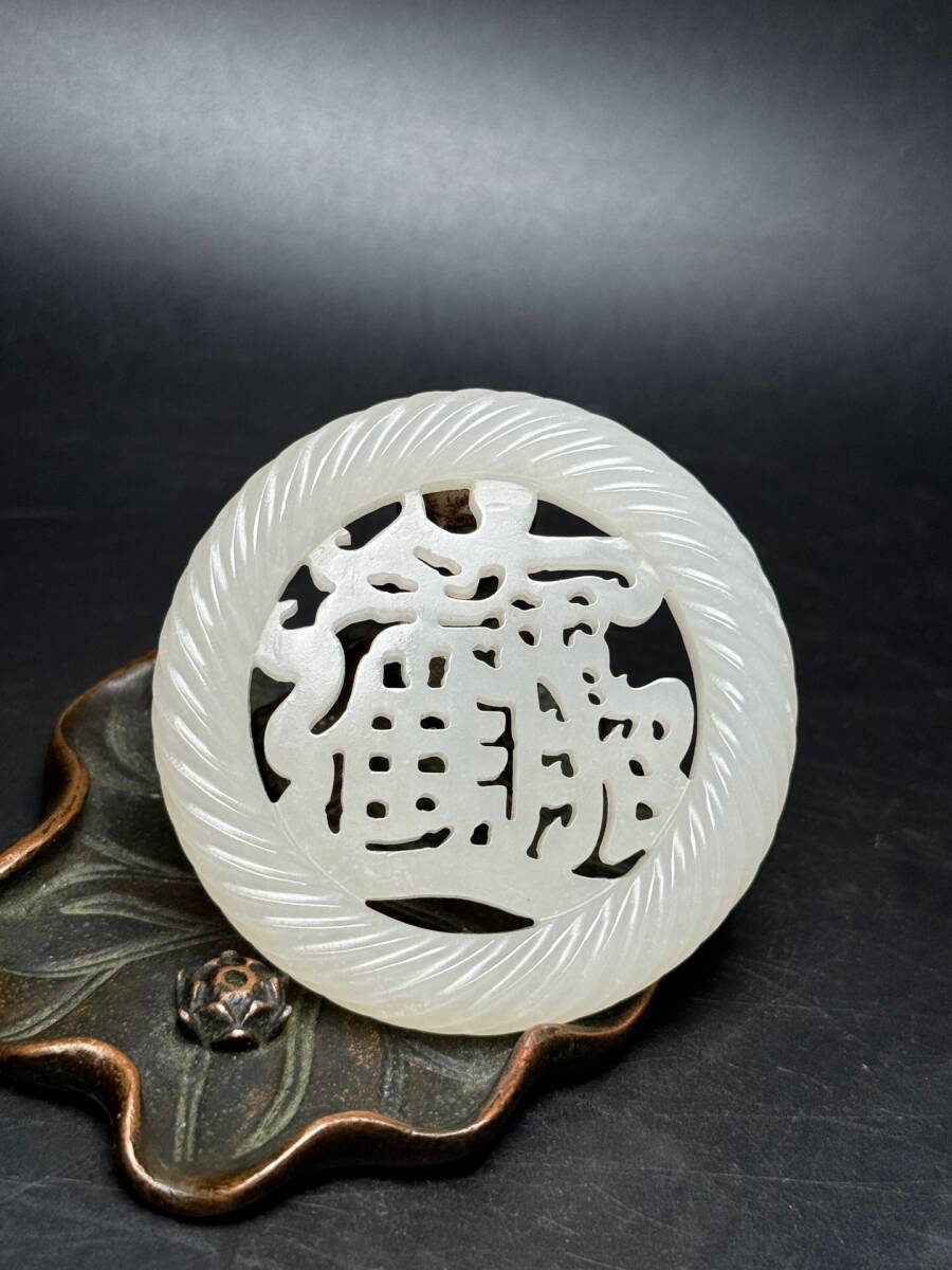 - 蔵友旧蔵出 和田玉製 細密彫 鏤空彫 招財進寶 玉璧 希少珍品 貴重品 置物 古賞物 中国古玩 中国古美術品