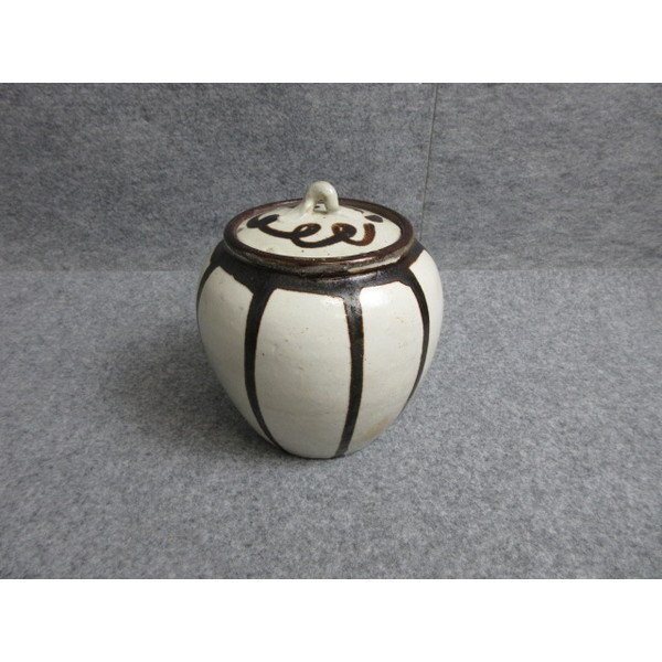 - 白丹波 鉄釉 流釉 壺 蓋付き [B28269] 高さ16cm 直径15cm 古丹波 江戸 壷 小壷 水指 丹波焼
