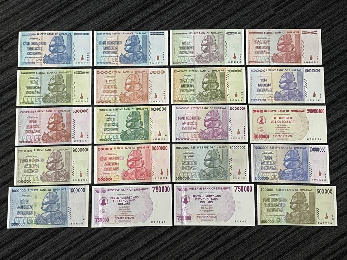 > ■全て未使用/ピン札■20枚セット ジンバブエ 紙幣 280087363000000 ジンバブエドル 2008年 280兆873億6千300万ドル分