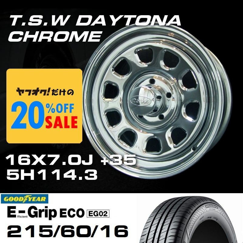 > 特価 TSW DAYTONA クローム 16X7J+35 5穴114.3 GOODYEAR E-GRIP 215/60R16 4本セット (ハイエース100系/152系ハイラックス)