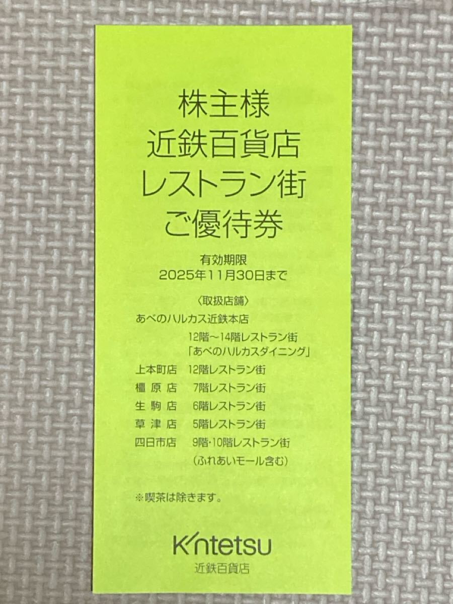 - 株主優待券 近鉄百貨店 レストラン街 ご優待券 冊子 10枚