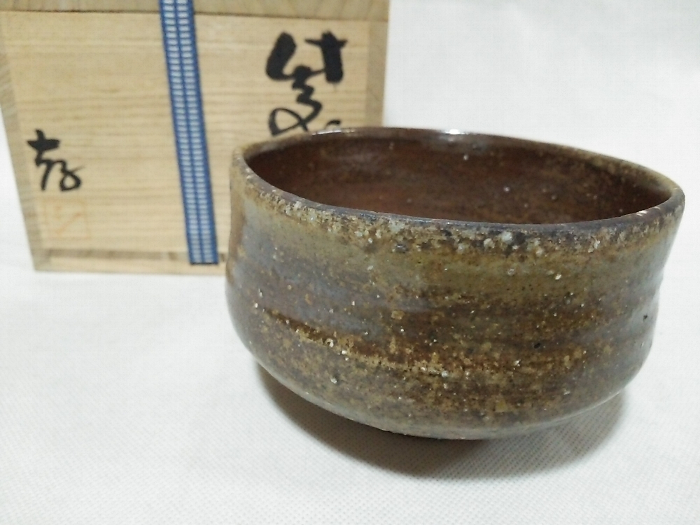 - ★【一美堂】★茶道具★備前焼 目澤孝作★焼締緋襷★『抹茶碗』★共箱付★