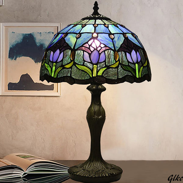 - 【チューリップをモチーフにしたステンドグラスシェードが華やかで上品】 ステンドグラスランプ ティファニーランプ ライト 照明 ブルー