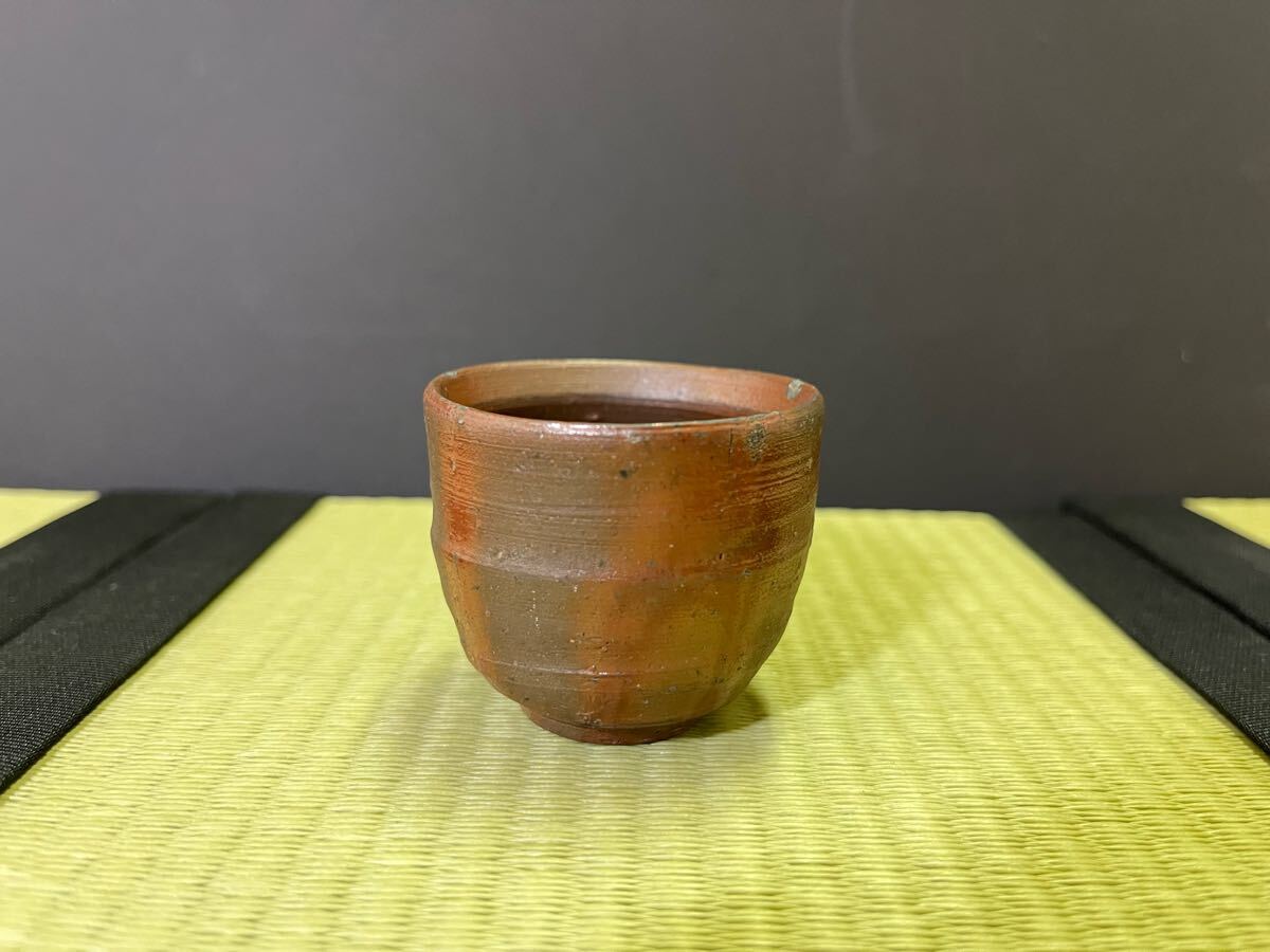 - 備前 森宝山 窯変 赤 緋襷 ヒダスキ お猪口 ぐい呑み 小振り 酒器 酒呑
