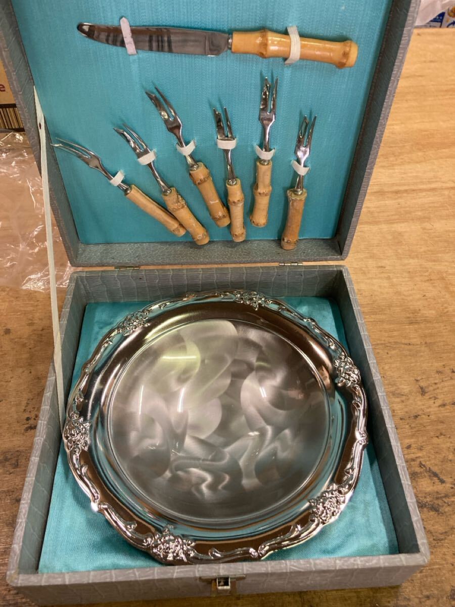 - アンティーク 銀シルバー三つ足フルーツ皿 ナイフフォークセット