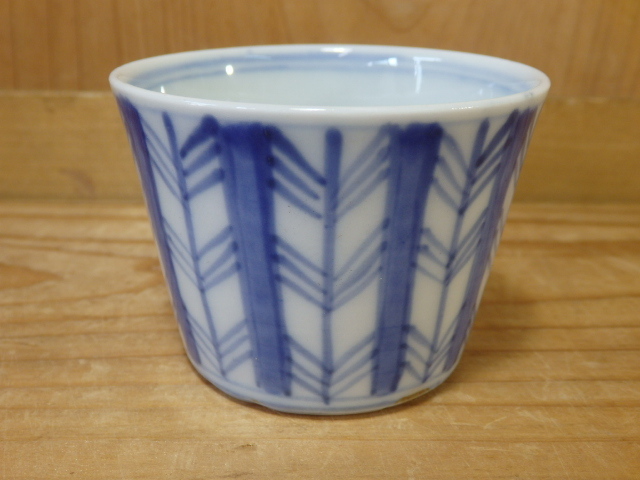 - ◆蕎麦猪口:26:◆『矢羽』小振り型◆線書◆染付:青華◆べた底◆保存状態良好◆