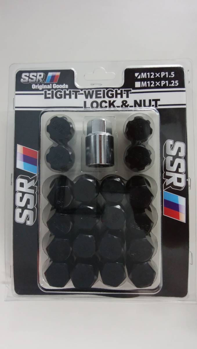 - SSR LIGHT WEIGHT LOCK & NUT SET ライトウェイトロック&ナットセット 20個入set 19HEX ①M12×P1.5 ②M12×P1.25 ブラック 5穴用 34mm □